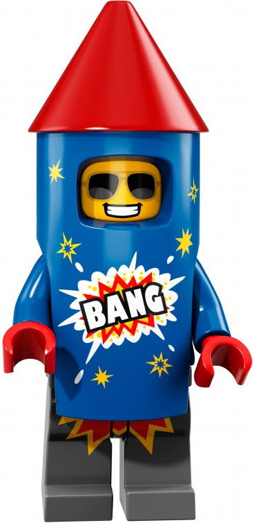 Mädchen im Elefantenkostüm, Mann im Anzug aus LEGO Steinen, Mädchen im Kostüm aus LEGO Steinen, Party-Clown, Pyrotechniker, Party-Mädchen, Mann im Drachenkostüm, Polizist von 1978 (sehr selten !), Junge im Spinnenkostüm, Tortenmann, Kaktusmädchen, Mädchen im Katzenkostüm, Rennwagen-Mann, Blumentopfmädchen, Mann im Cowboykostüm, Party-Junge und Einhorn-Mann.