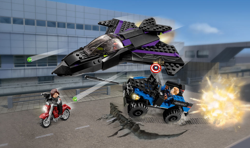 - Enthält 3 Minifiguren: Black Panther, Captain America und Winter Soldier.