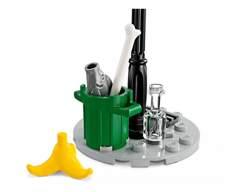 - Faszinierendes Zubehör: Eine Mülltonne, eine Flasche, ein Fisch, ein Knochen, eine Bananenschale und Dynamit laden zu aufregenden Rollenspielen ein